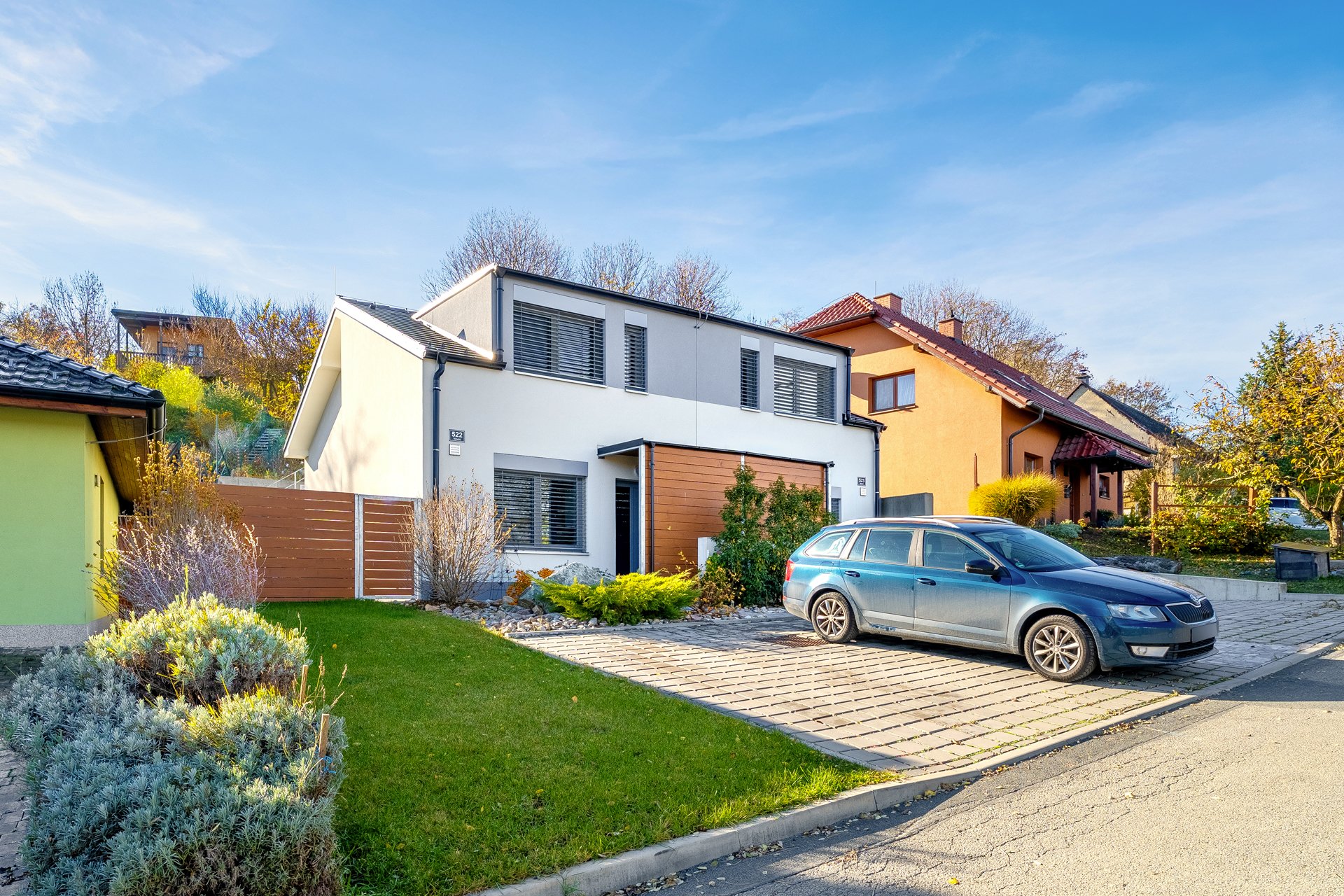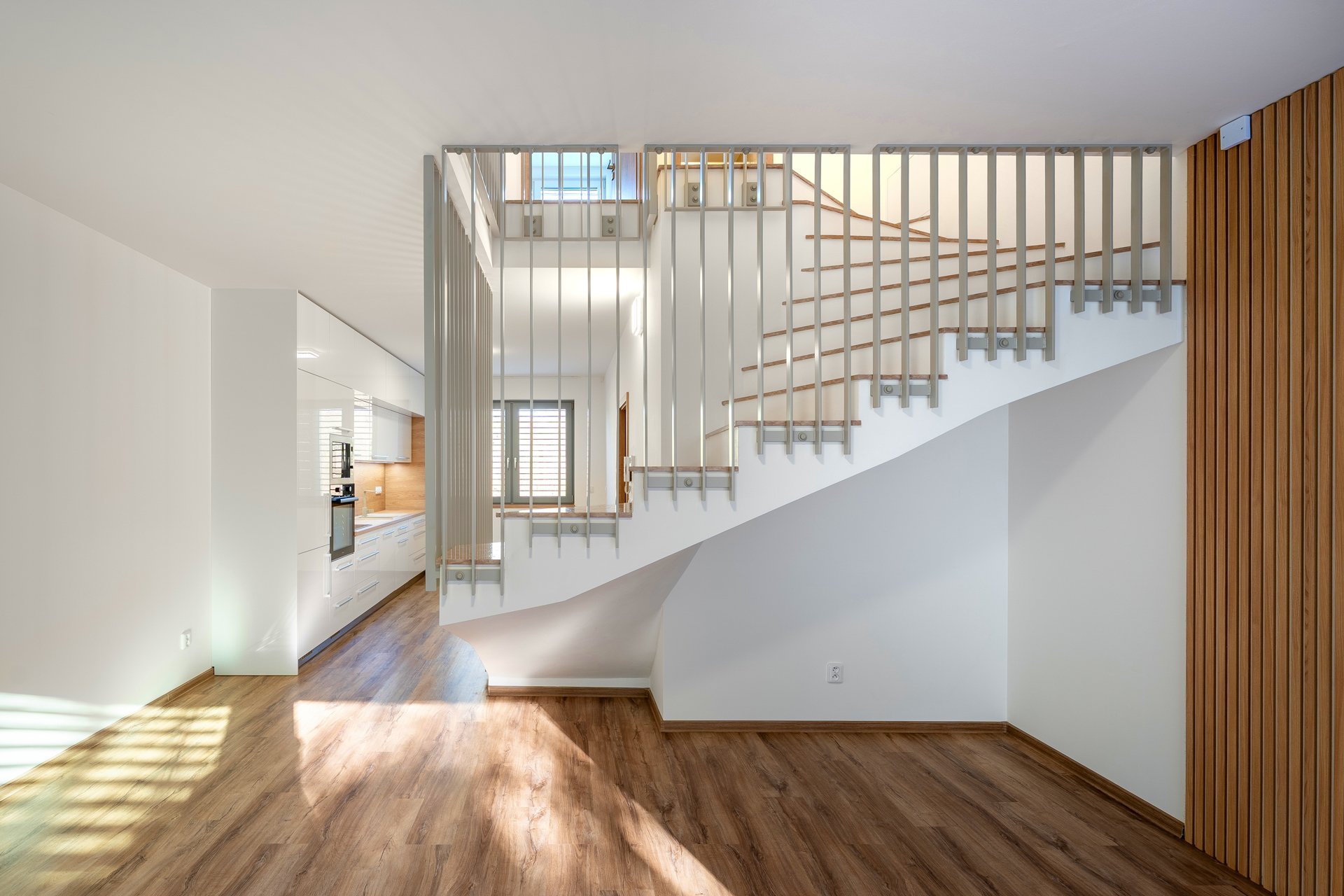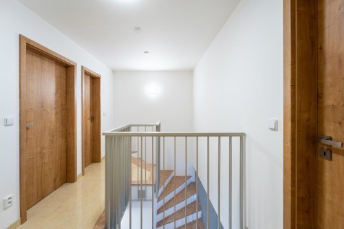 Dispoziční řešení domu bylo promyšlené do posledních detailů a ani na kvalitě použitých materiálů se rozhodně nešetřilo, nejen mramorové schodiště či hliníkové portálové dveře, předokenní žaluzie ve všech oknech a dveřích, moderně řešené koupelny v obou patrech, vinylové podlahy či interiérové obložkové dveře, příprava na klimatizaci či zabezpečovací systém a v neposlední řadě i moderní kuchyňská linka včetně spotřebičů řešená na míru, jsou toho důkazem.